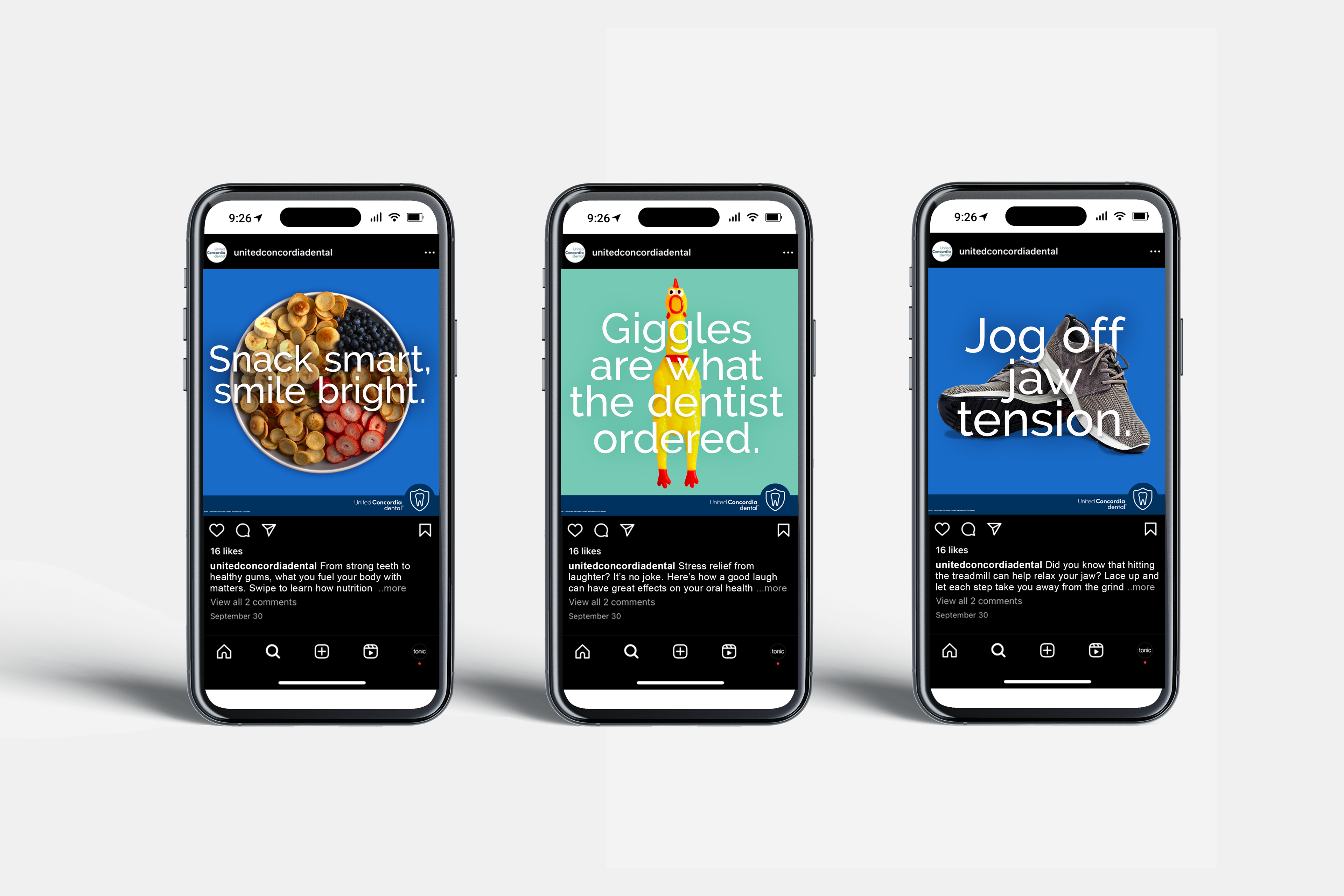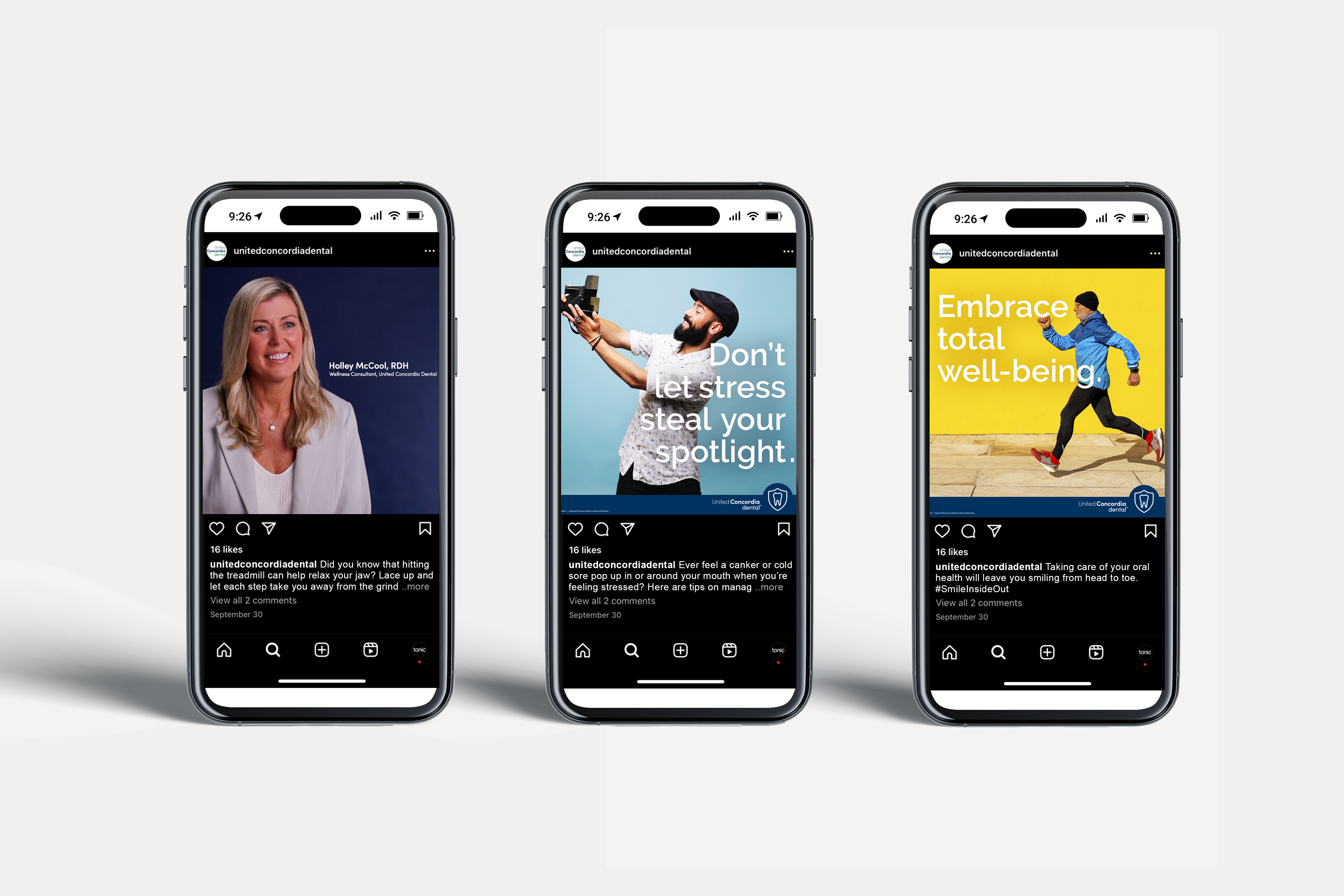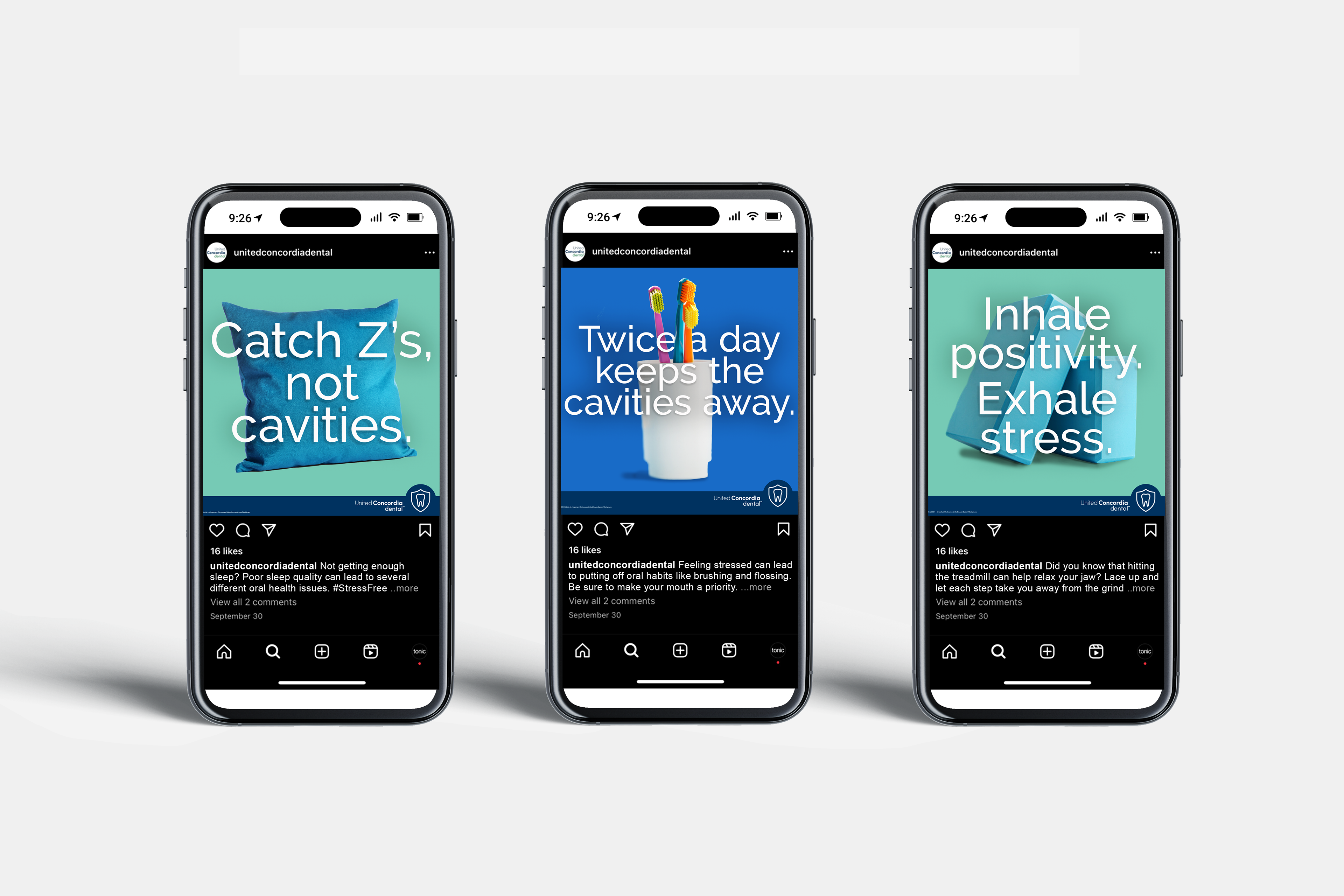 We developed a multi-faceted creative solution centered around expert insights and engaging content. We interviewed two Wellness Consultants to create a series of short videos emphasizing the importance of flossing, stress management and good oral health. These videos, along with supporting graphics and social media copy, were shared across UCD’s social media channels.